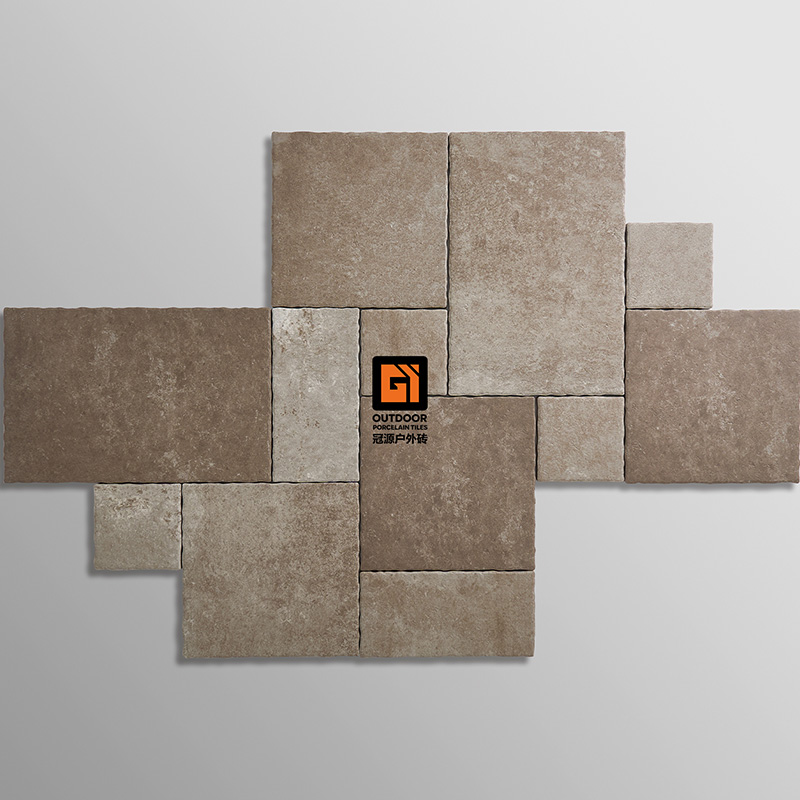 法式拼自然原边户外砖法式拼自然原边保留了法国拱廊石材的曲边特性,还原那份自然与古典的美感;采用12MM- 20MM 厚度的户外砖,拥有更强的耐性、耐候性与使用寿命它既能媲美原有石材的美学表现,又超越了原石材在功能上的限制。